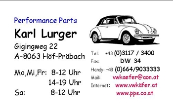 Performance Parts Karl Lurger, Gigingweg 22, A-8063 Höf-Präbach, Tel: +43 (0)3117 / 3400 Fax: DW 34 E-Mail: vwkaefer@aon.at |